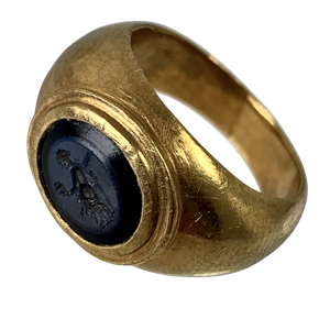 Ancient Roman intaglio ring ca 200 A.D. The niccolo intaglio is of Aphrodite holding the head of Adonis...