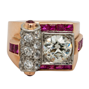 Diamond and ruby calibre - cut ring...