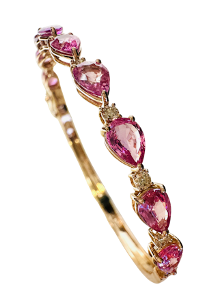18K yellow Gold, 6.19ct Natural Pink Sapphire & Diamond Bangle. ...