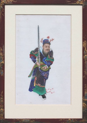 A very finely Embroidered Gros and Petit Point, Silk and Wool, Embroidered Panel "Shepherd & Shepherdess", previously a chair back rest. ...