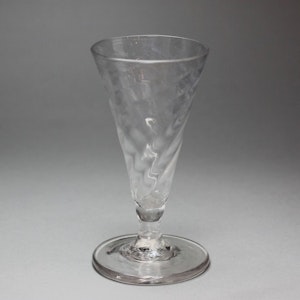 English wine glass, 18th/19th century, with tapered wrythen bowl on a knopped stem with circular base....