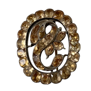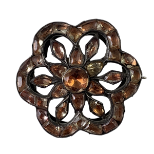 Ca 1780 Portuguese silver brooch set with foiled yellow topaz...