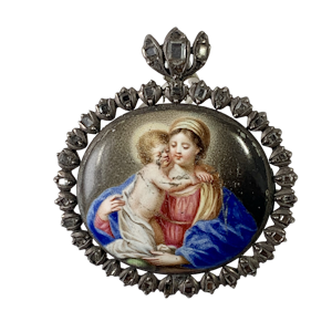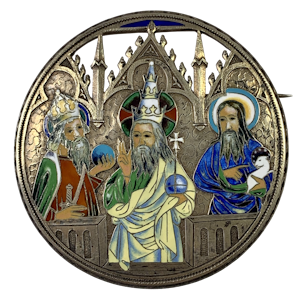 Enamelled silver brooch in the Historical revival style by the famous Paris jeweller Frederick Jules Rudolphi. The box is with the address of 23 Boulevard de Capucines . The firm moved to this address...