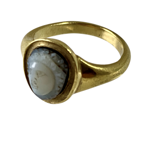 Ancient Roman ca 2nd century A.D. cameo of Medusa set into a high carat "modern" gold ring....