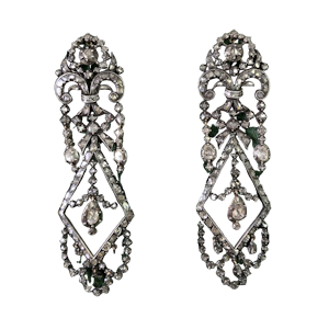 Pair of ca 1800 probably Portuguese silver earrings set with diamonds...