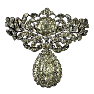 Ca 1760 Portuguese silver mounted chrysolite brooch with drop ....