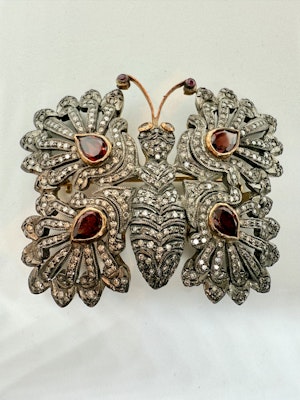 Gold & Silver, Diamond & Garnet Butterfly Brooch....