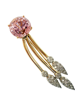 18K Yellow Gold, 12.00ct Natural Kunzite & Diamond Brooch....
