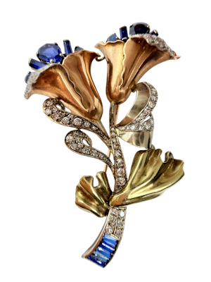 Gold, Ruby, Blue Sapphire & Diamond Brooch.