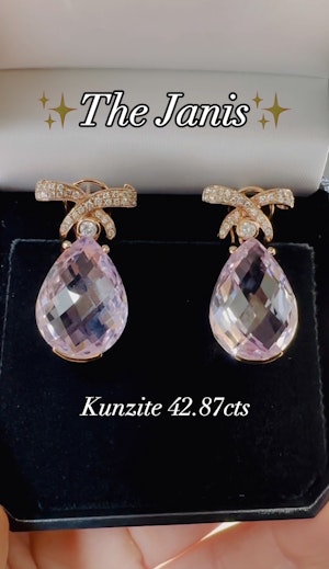 18K yellow gold 35.00ct Kunzite and 1.25ct Diamond Earrings....