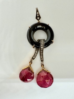 Gold & Silver, Diamond, Tourmaline & Black Onyx Necklace....