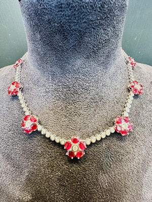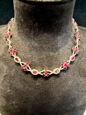 18K white Gold, 35.50ct Natural Burma Ruby & 4.57ct Diamond Necklace....
