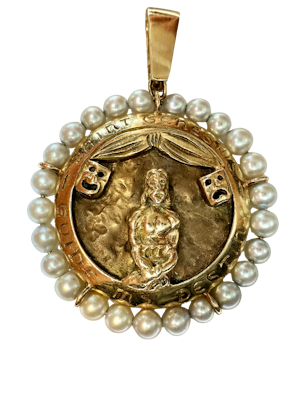 14K Yellow Gold, Natural White Pearls, Saint Genesius Guide My Destiny Medallion....