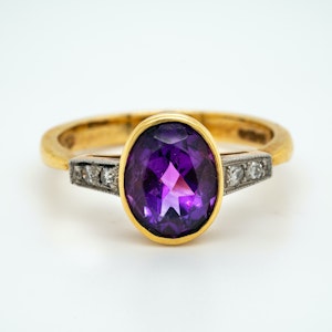 18K yellow gold, 2.00ct Amethyst & Diamond Ring....
