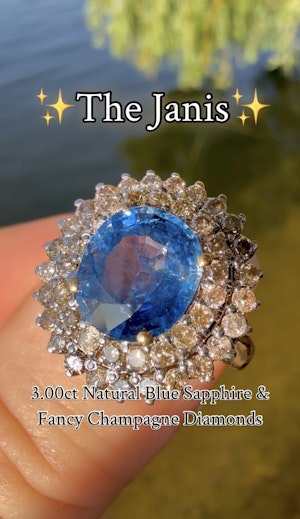 18K yellow gold, 3.00ct Natural Blue Sapphire & 1.00ct Fancy Champagne Diamond Ring....