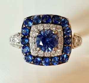 18K white gold, 0.72ct Natural Blue Sapphire & 0.59ct Diamond Ring....