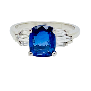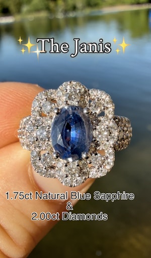 18K white gold, 2.00ct Natural Blue Sapphire & 0.50ct Diamond Ring...