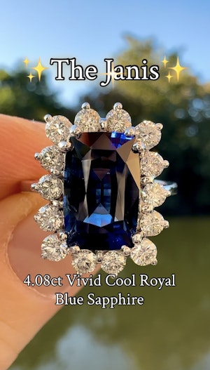 18K white gold, 4.08ct Natural Vivid Cool Royal Blue Sapphire & 1.00ct Diamond Ring....
