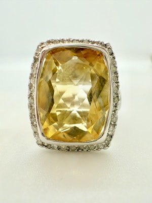 18K white gold, 10.00+ ct Citrine and Diamond Ring....