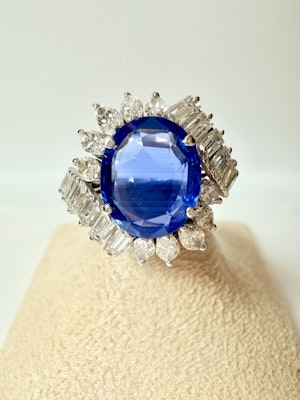 18K white gold 5.46ct Natural Blue Sapphire and Diamond Ring
