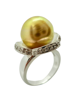 18K white gold, Golden Pearl and Diamond Ring. ...