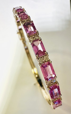 18K yellow Gold, 6.19ct Natural Pink Sapphire & Diamond Bangle. ...