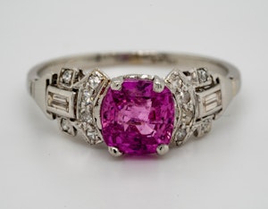 Vintage, Platinum 2.90ct Natural Pink Sapphire and 0.35ct Diamond Ring....
