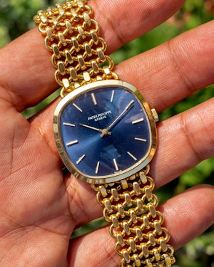 1970 Patek Philippe Golden Ellipse 3544/2 - Factory Blue Dial 18k Yellow Gold Rare Vintage Jumbo Mechanical...