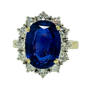 18K yellow/white gold 9.31ct Natural Blue Sapphire and 1.63ct Diamond Ring....