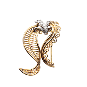 A beautiful art deco 18ct yellow gold and diamond brooch...