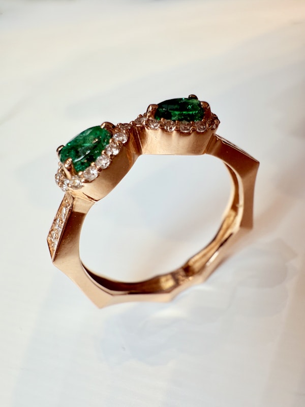 18K Rose Gold, 0.44ct Natural Emerald & 0.27ct Diamond Ring.
