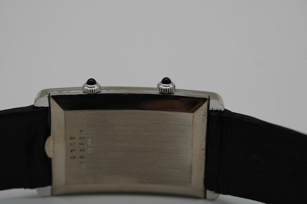 This example is in excellent condition, accompanied by its original box and papers (undated, US supplied). The 18K white gold case measures 25 x 36 mm, polished to a high standard and showing only light wear consistent with careful ownership.