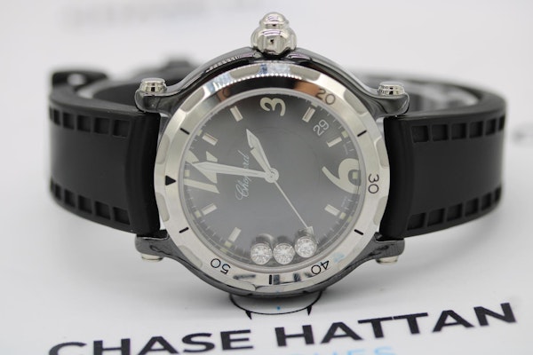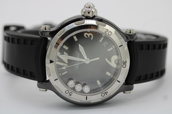 Limited to 3000 this one is model 981. New replacement Chopard black rubber strap with steel buckle that appears unworn. Waterproof to 30 meters.