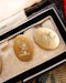 A beautiful pair of 18 Carat Yellow Gold (stamped), "Heraldic Cypher" Engraved Cufflinks, with a makers mark: S & S: Saunders & Shepherd, Estd. 1869.