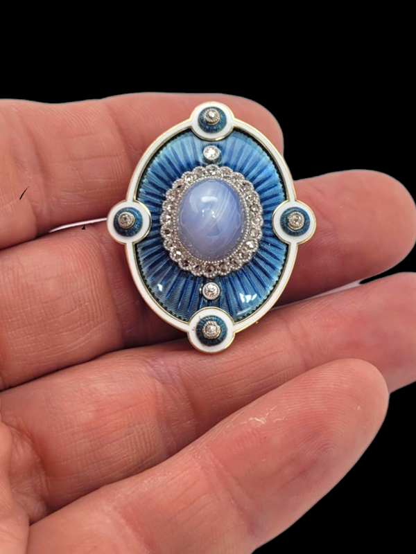 Fine Edwardian star sapphire, diamonds and enamel brooch/pendant SKU: 8065 DBGEMS