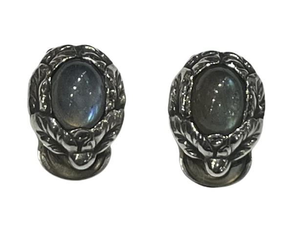 Georg Jensen Earrings 1997 Labradorite Cabochon Sterling Silver Clips