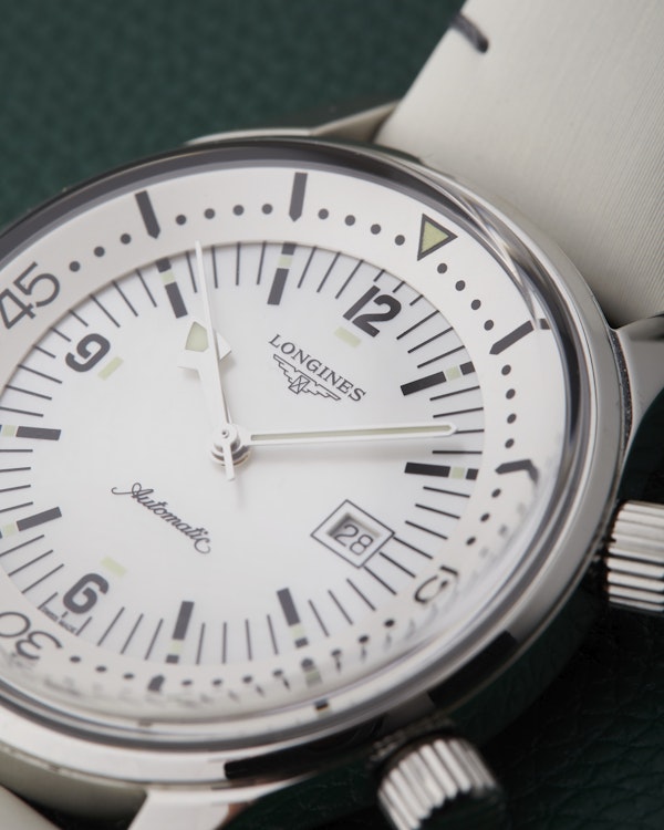 A rather unusual configuration of the Longines Legend Diver range.