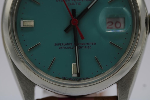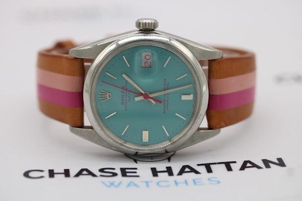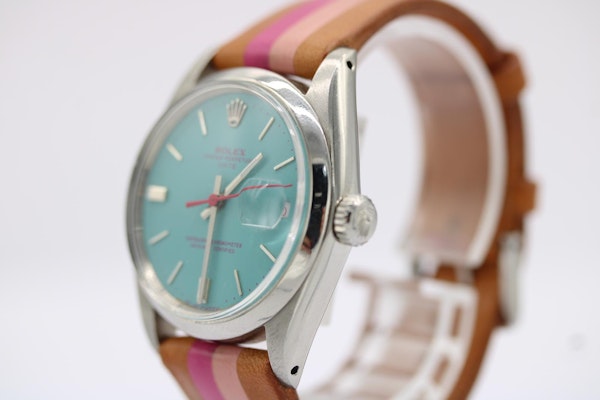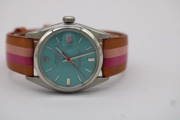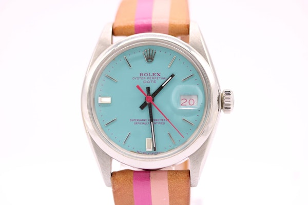 Rolex Oyster Perpetual Date 1500 by La Californienne | 34mm | Turquoise Dial | Pink Details | Custom Leather Strap