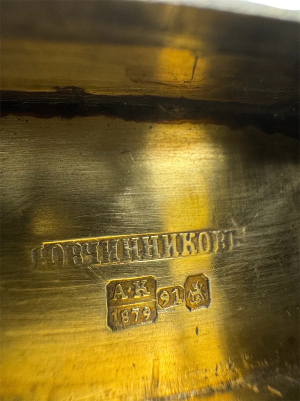 Marked 91 for high grade silver with the maker’s mark ‘Ovchinnikov’ in Cyrillic.