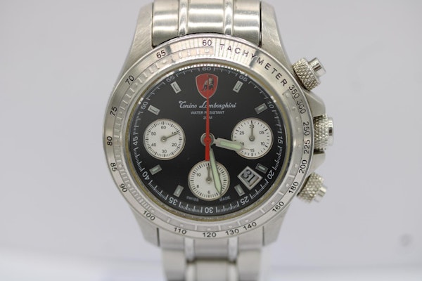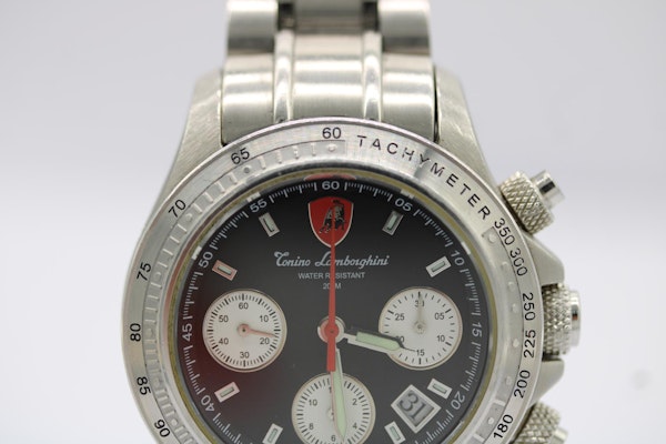 This Tonino Lamborghini Chronograph 168/500 is a bold celebration of Italian design and limited-edition exclusivity. With its clear caseback revealing the automatic movement, full steel construction, and complete presentation set, it’s a watch that will appeal equally to collectors and enthusiasts of performance-inspired horology.
